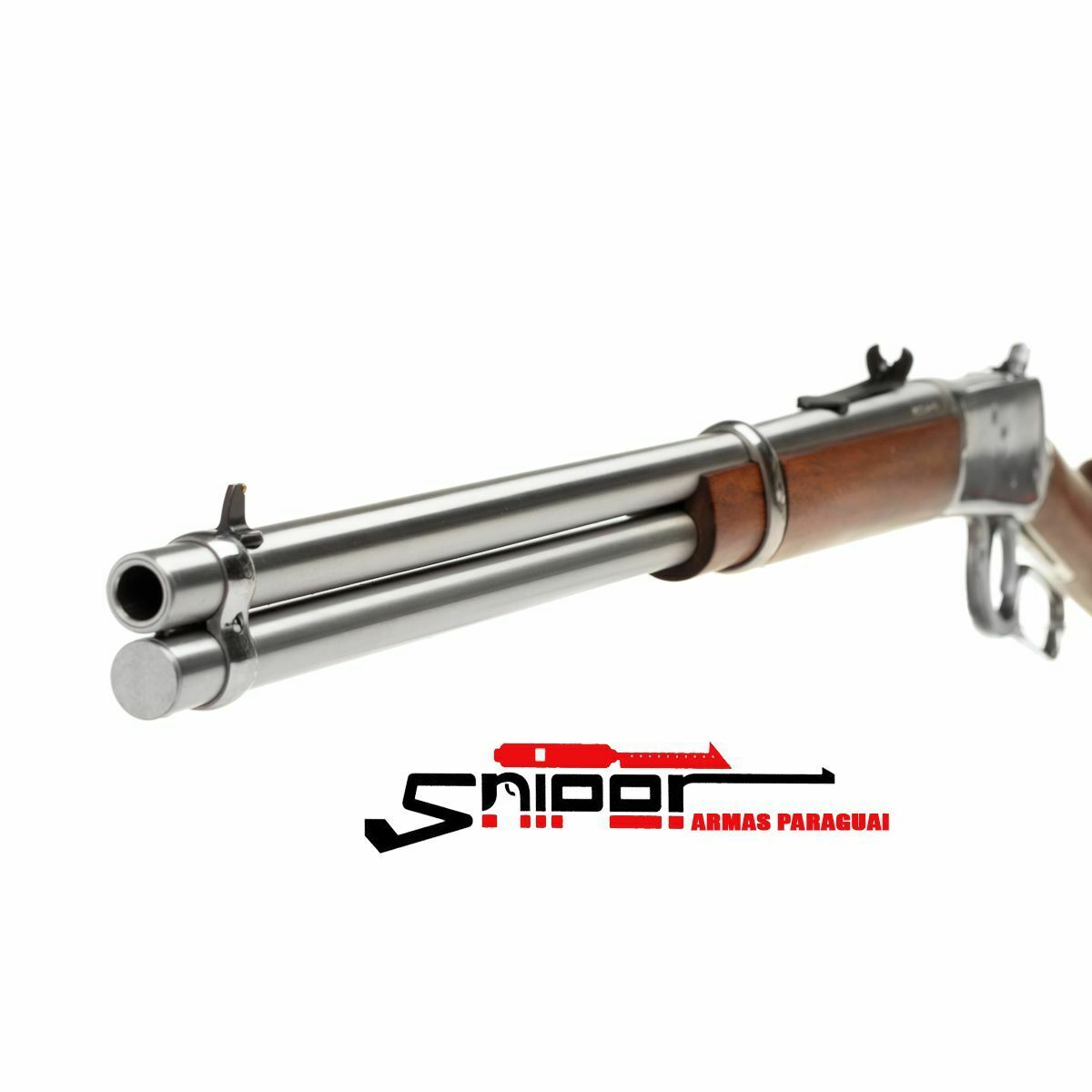 Carabina de ação por alavanca, com ferrolho de duplo trancamento, percursor flutuante e cão exposto. Coronha em madeira de lei. Soleira em aço, vértice de mira regulável em altura, carregador tabular sob o cano. Arma inspirada nas clássicas carabinas Lever Action americanas.